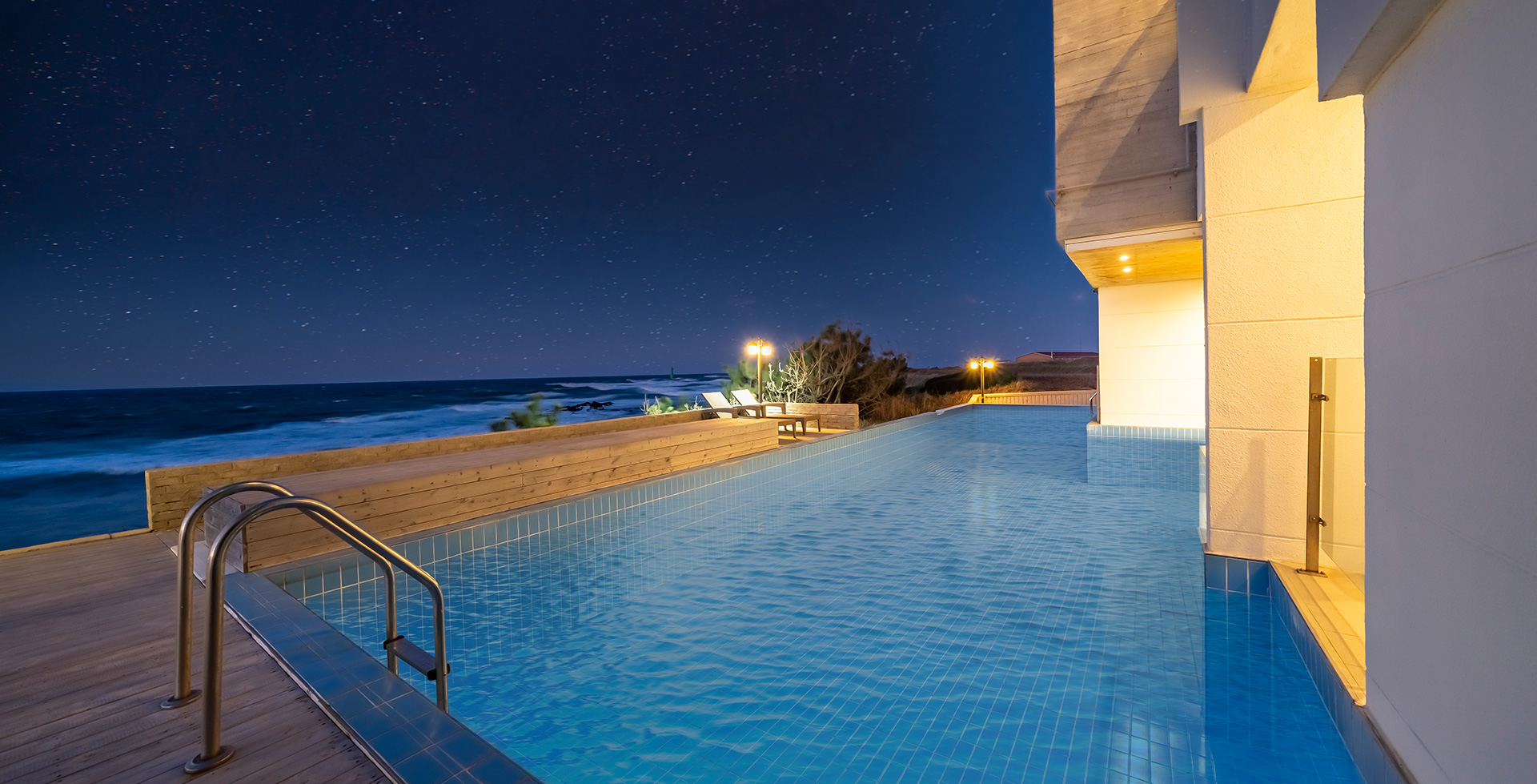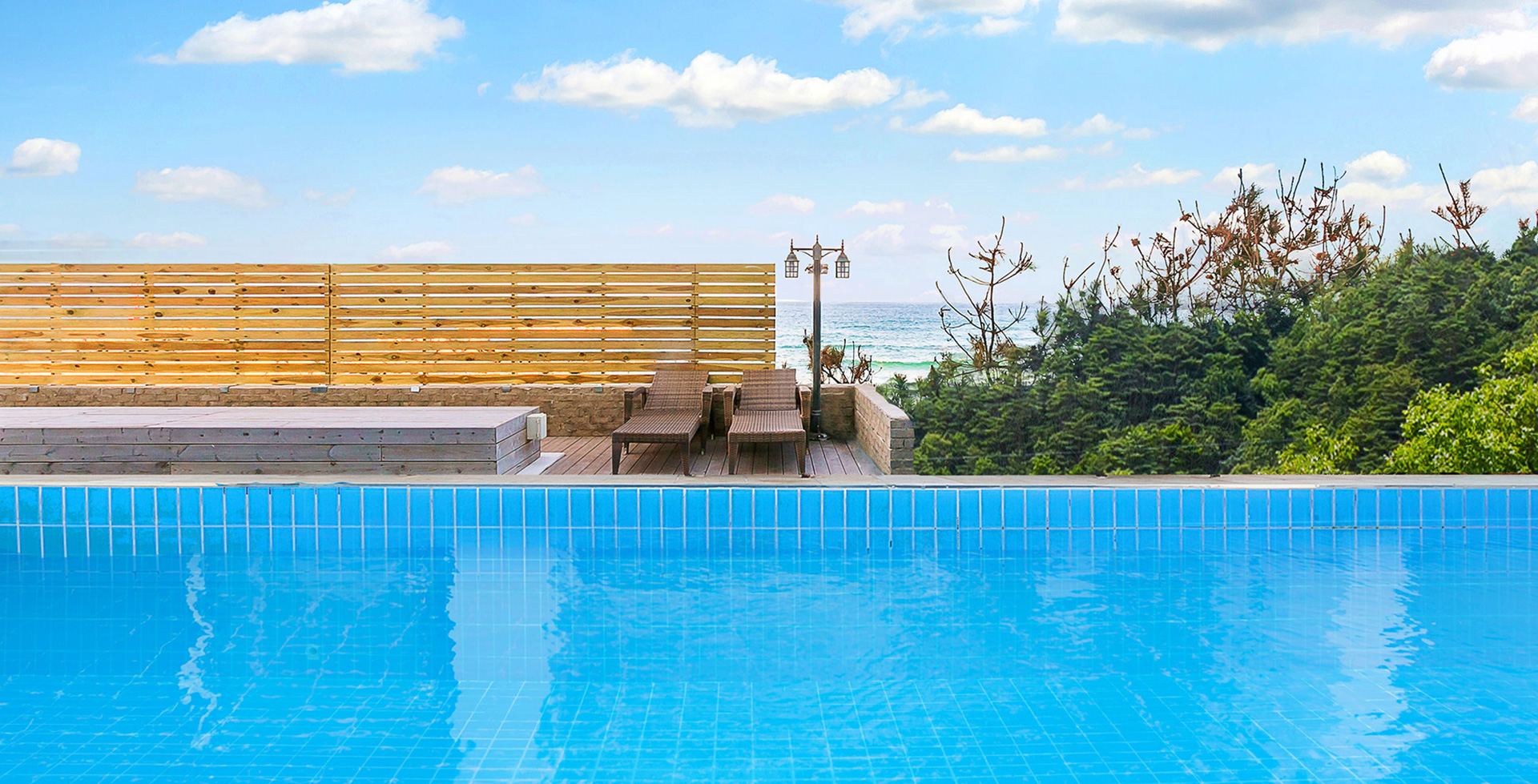 비치드웨일의 멋진 야외수영장에서